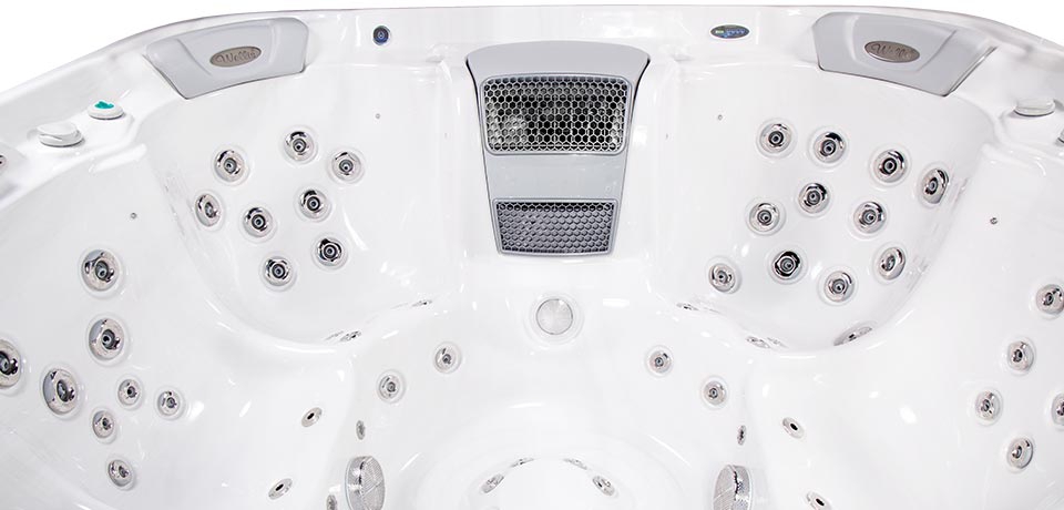 Our Vienna Life hot tub is specially designed for entertaining and relaxing larger groups, as 7 people can participate in the wellness experience of the exclusive hot tub at the same time. The spacious interior allowed the installation of the WellDome™ foot massage system at the center.